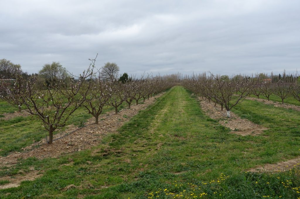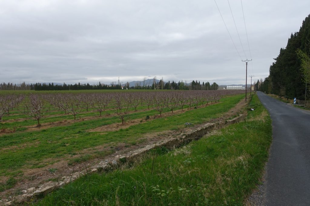 Nous repartons et traversons maintenant des vergers en fleur.