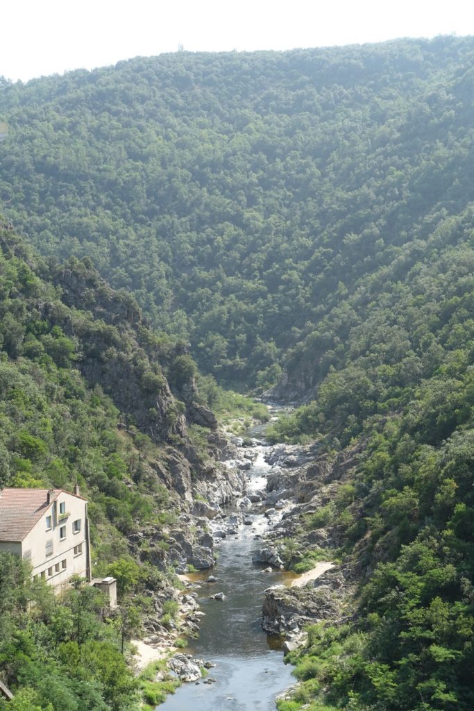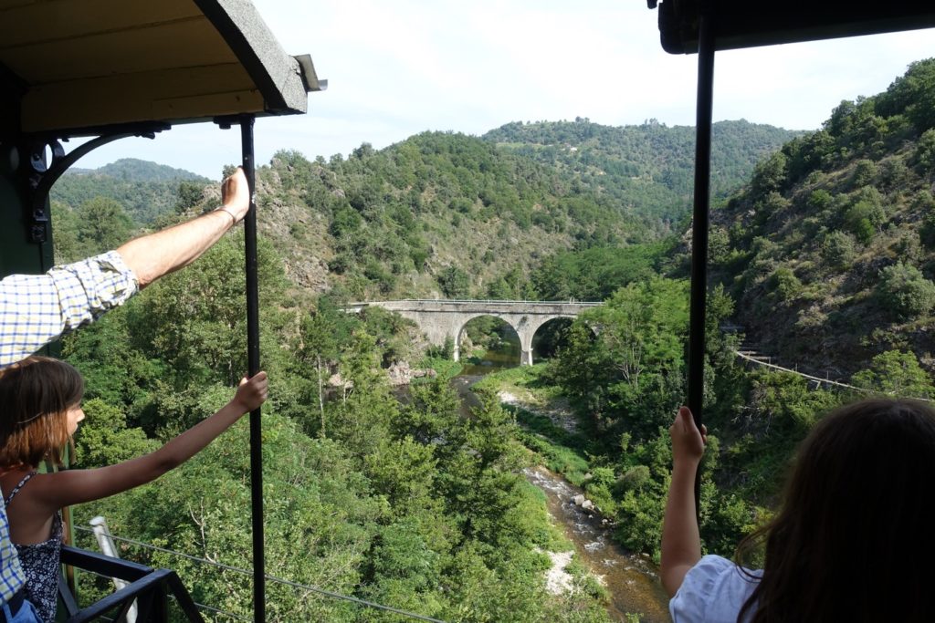 Tchouuuuuu, Tchouuuuuu ! Nous voilà partis dans les gorges du Doux. Ponts, viaducs, barrage, tunnel, rivière en contrebas… Le train monte doucement et nous laisse le temps d’admirer le paysage.