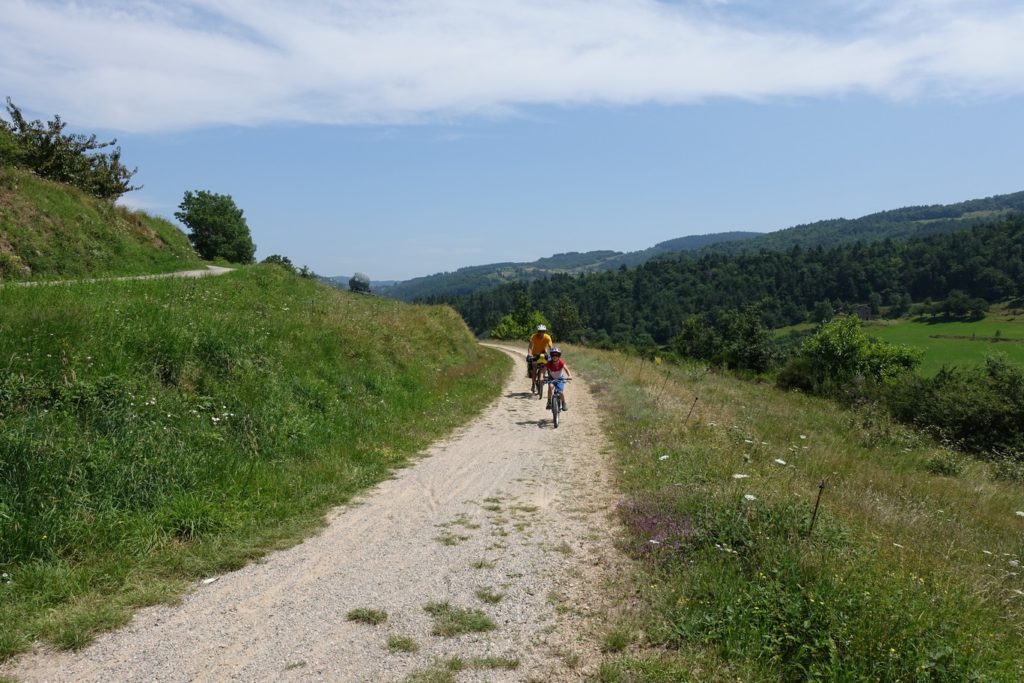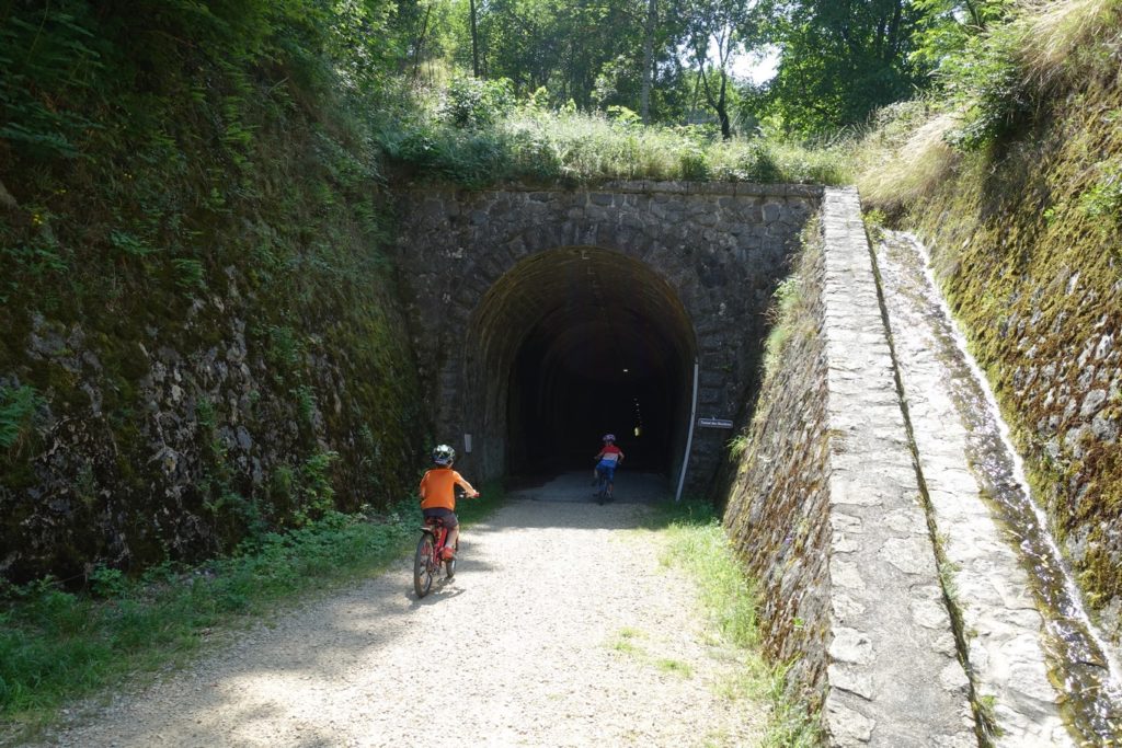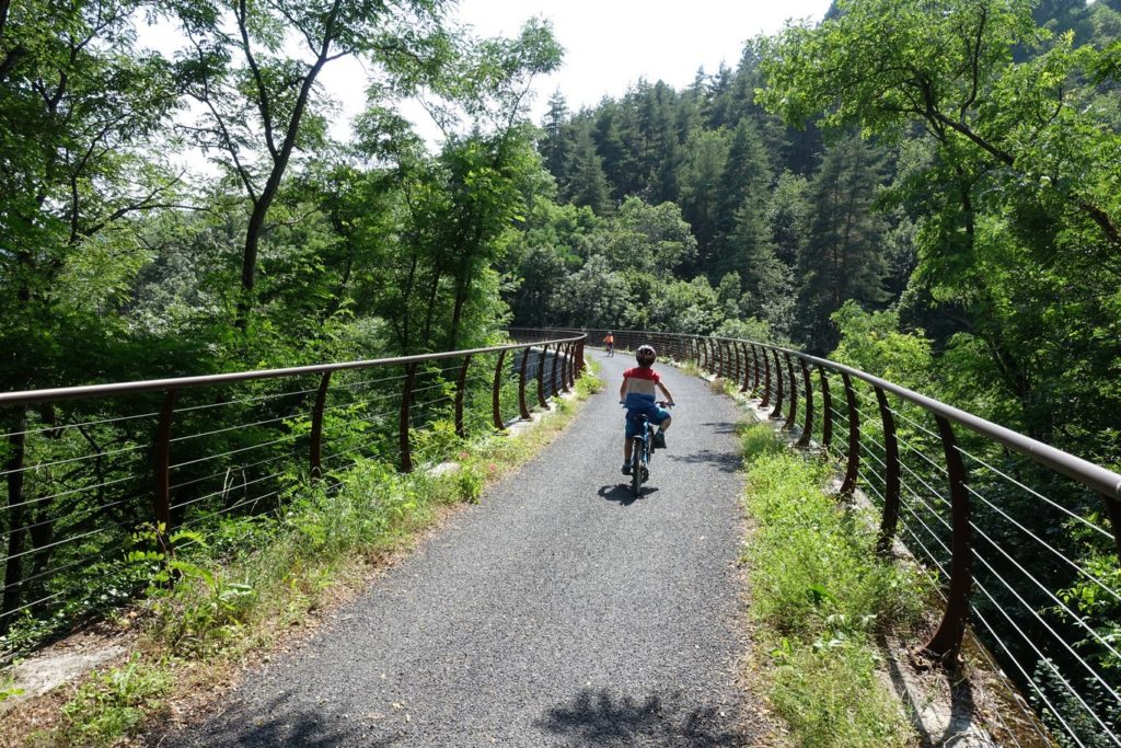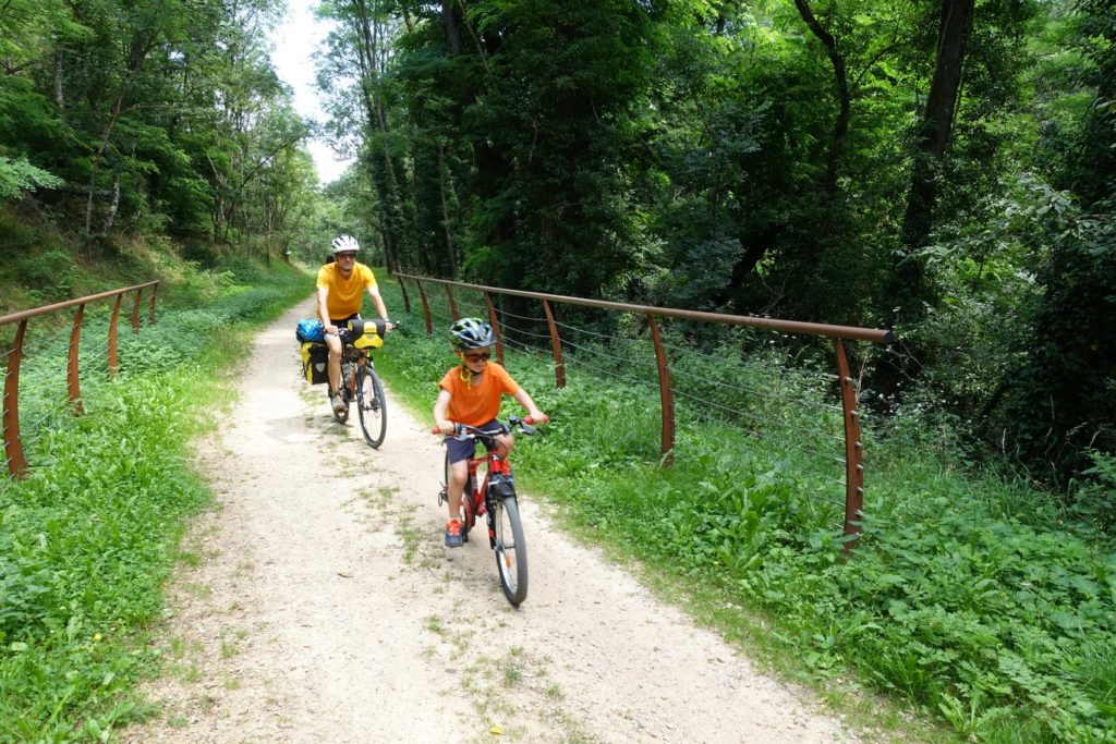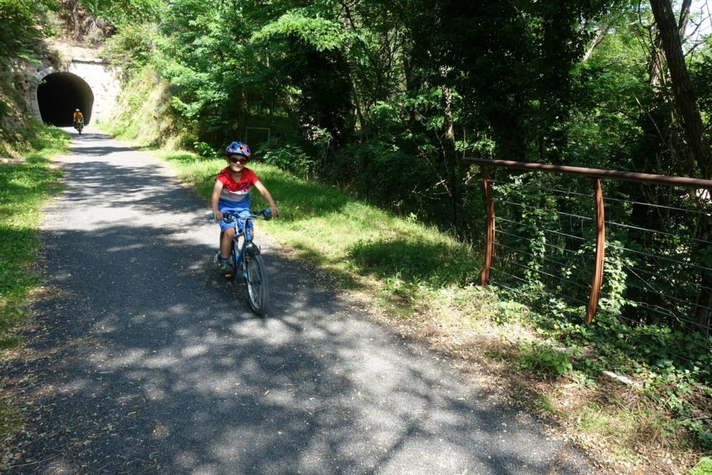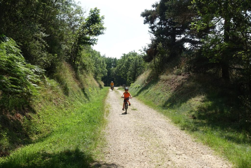 Ça monte, certes doucement, mais en continu sur un peu plus de 11 km. Quelques cailloux recouvrent la voie verte, rien de bien difficile pour nous, mais pour Lucas, c’est autre chose ! Pour Martin, c’est plus facile. Même si au bout de 5 km, il grogne un peu.