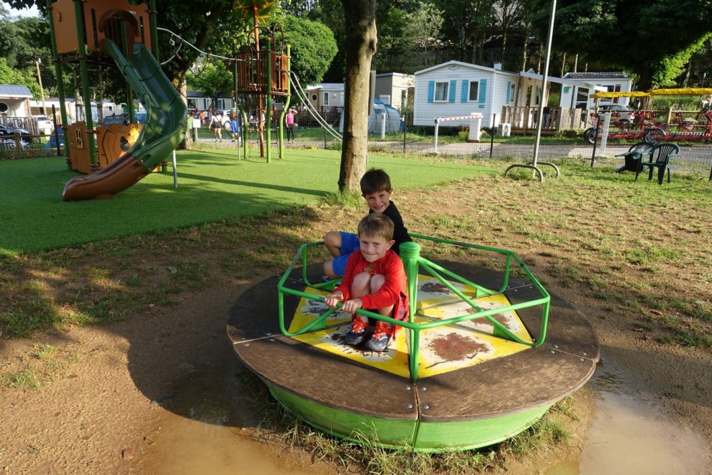 Bon avec tout ça, nous n’avons plus très chaud pour retourner dans l’eau mais nous emmenons les enfants aux jeux et allons prendre un petit apéro au bar du camping.