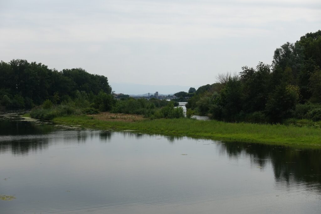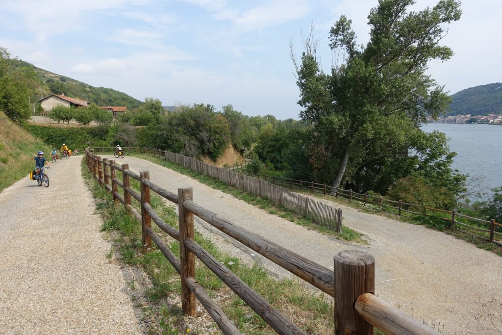 Nous passons un barrage, Lucas et Martin s’arrêtent chacun leur tour pour le regarder. Petite descente et grosse montée ! Martin passe sans encombre, Kyan n’a pas anticipé le changement de vitesses, il est obligé de s’arrêter, il bloque Lucas qui était derrière lui, qui tombe (mais n’a rien), Maman passe sur le côté et Papa s’arrête en bas. Après ce carambolage, nous continuons notre chemin, tranquillement, pour nous arrêter sur une aire de pique-nique. Depuis que nous avons passé Lyon, il y a beaucoup plus de cyclistes.