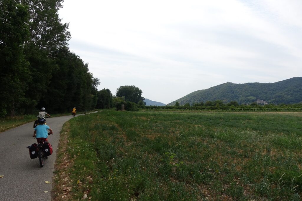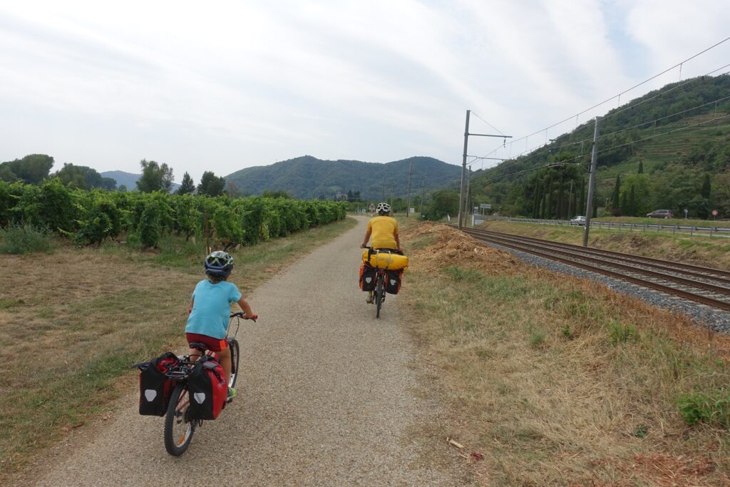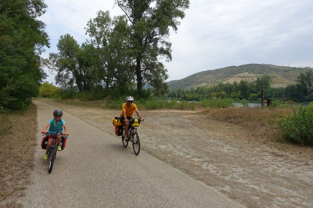 Un peu plus de 5 kilomètres pour rejoindre Tournon, ça devrait être vite fait et en effet, nous arrivons sans encombre. Lucas passe la barre des 300 kilomètres ! Les enfants roulent vraiment bien maintenant.