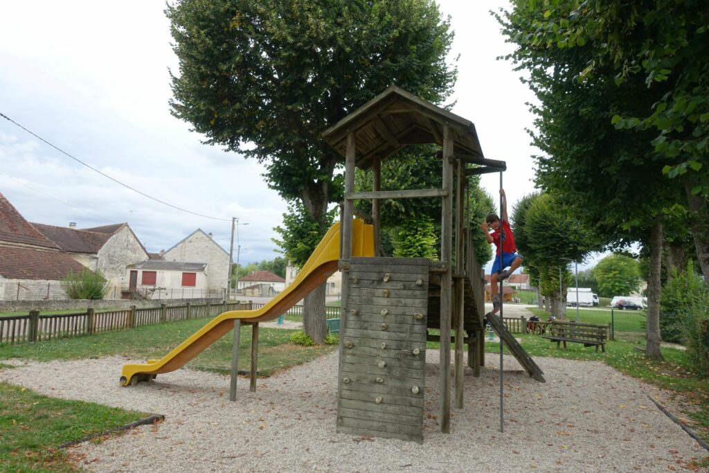 Nous avons bien avancé, il est presque 13h, une aire de jeux nous fait de l’œil. Nous décidons de faire la pause déjeuner.