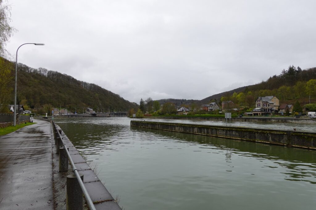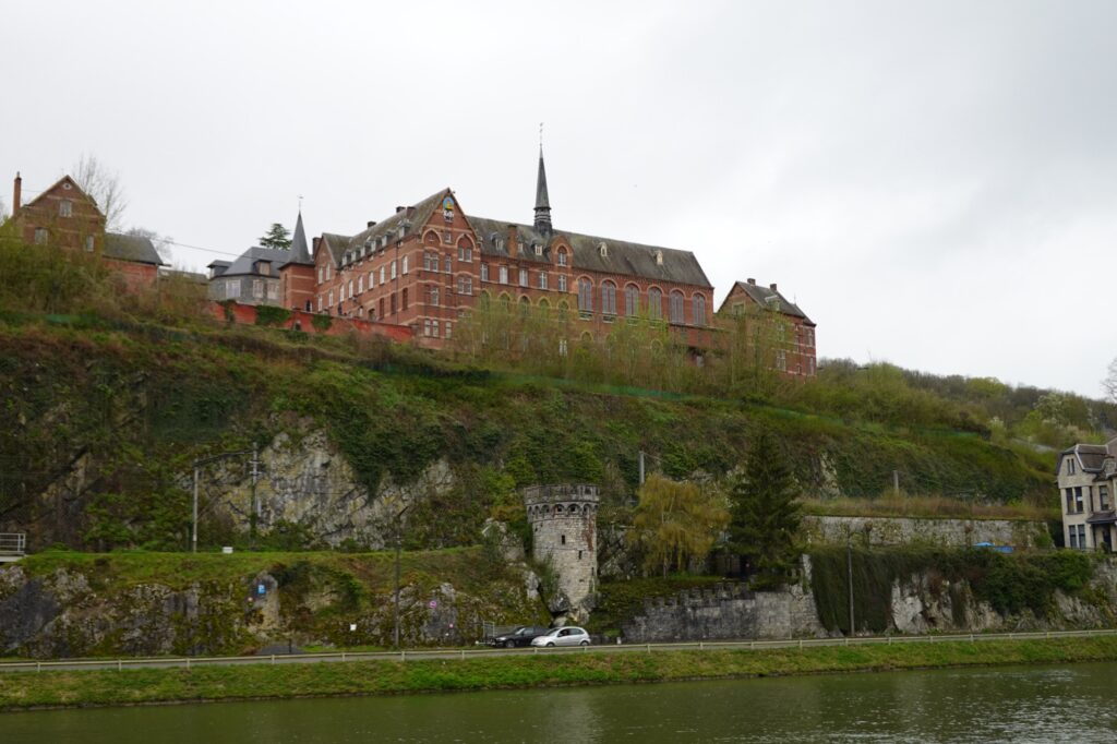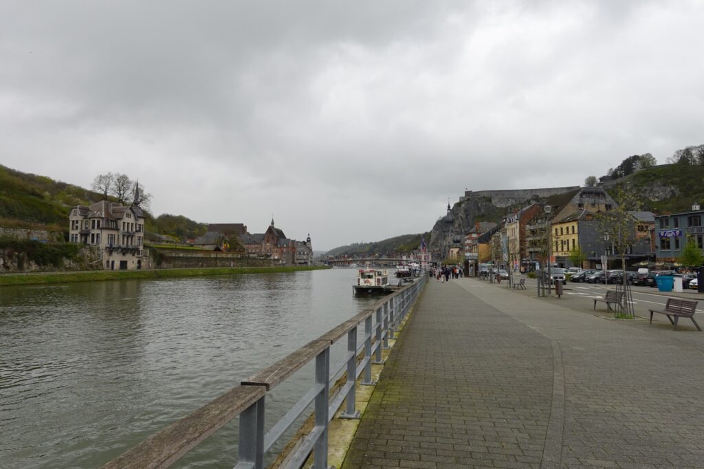 Nous redescendons jusqu’à la Meuse, direction Dinant. Nous parcourons une portion sur une route, mais les voitures font attention à nous et s’écartent.