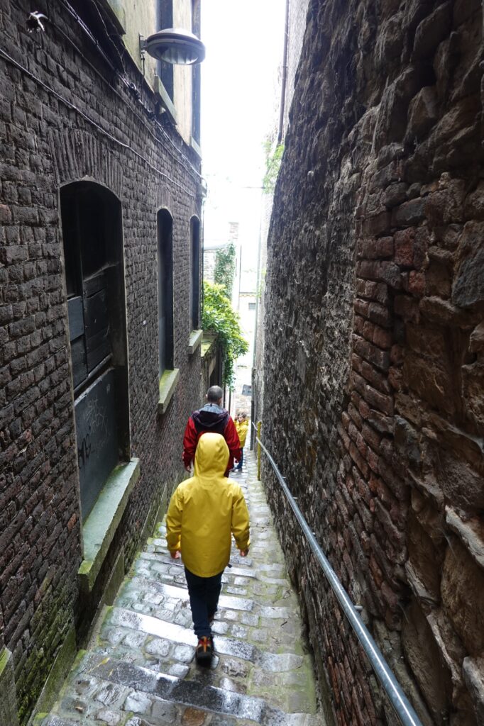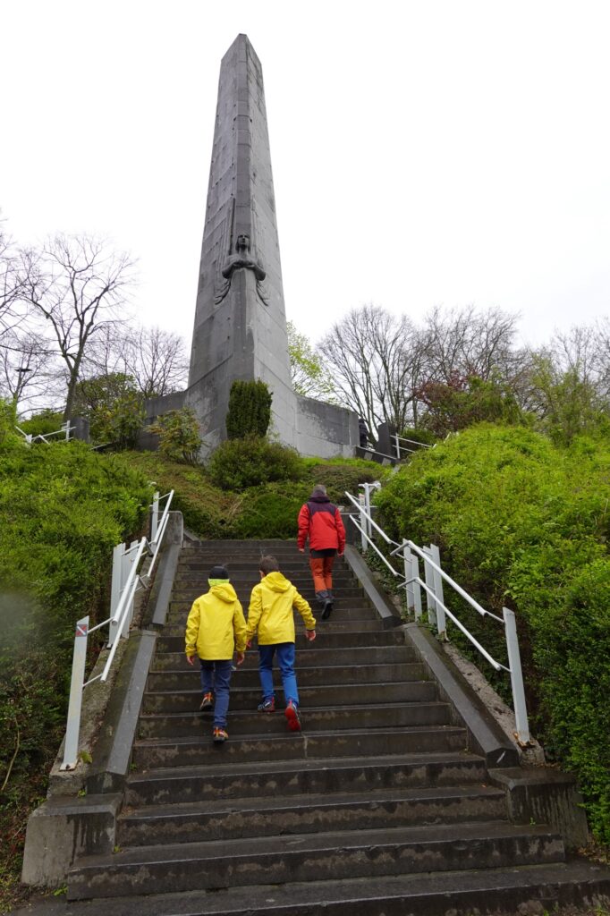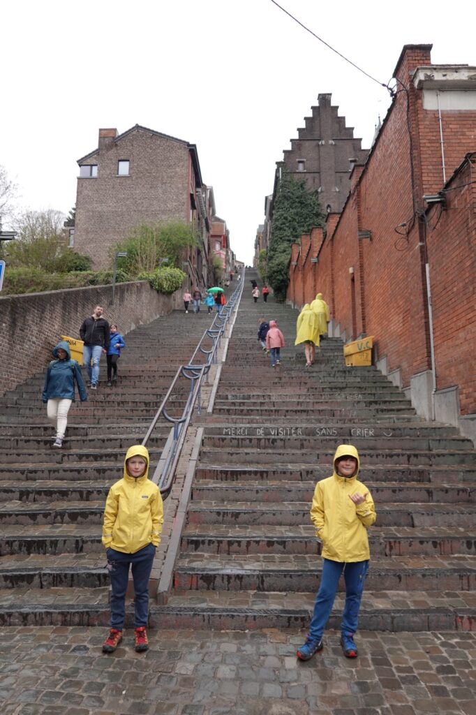 Sous une pluie fine, nous partons à l’ascension de la montagne de Bueren, un escalier de 374 marches ! Même quand nous ne faisons pas d’étape à vélo, nous trouvons le moyen de nous fatiguer.