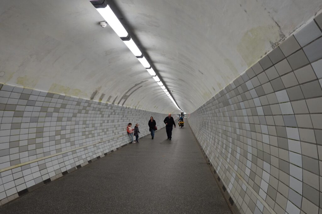 Nous atteignons Rendsburg en prenant un tunnel piéton/cycliste pour traverser un canal. De l’autre côté, une petite maquette explique la conception du fameux passage.