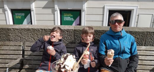 Ce matin, nous sommes en mode escargot… Papa et Martin vont acheter des céréales et en profitent pour prendre des pains au chocolat pour tout le monde. Au final, il nous ruine, à 35 kr le pain au chocolat… Bon, ils sont bons mais quand même !