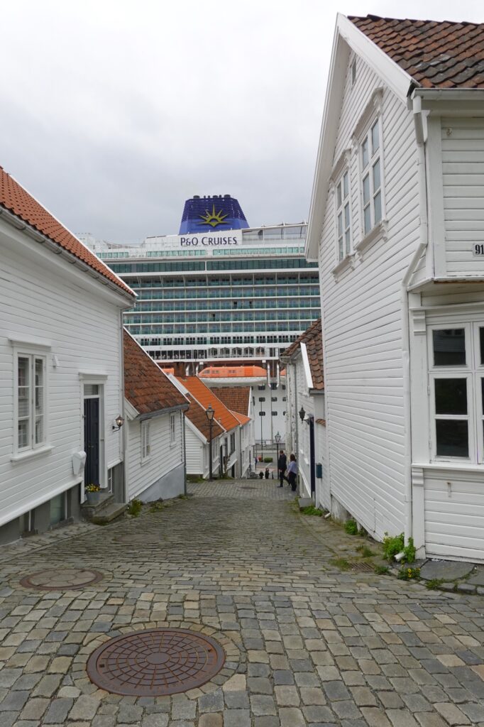 Les enfants finissent leur glace avec une vigilance accrue, la promenade vers le musée nous amène vers la vielle ville qui est côtoyée et dépassée par un paquebot de croisière.
