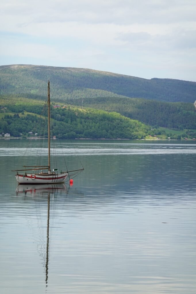 Il va nous falloir réfléchir à notre passage à Trondheim (nous y serons demain ou après-demain). Nous avons reçu un message de Janus qui nous propose de planter la tente sur un spot pas loin de chez lui. Le seul problème c’est qu’il vit à 7km du centre de la ville, pour visiter c’est peut-être un peu loin (ou pas ?) et nous ne pourrons pas faire de grasse matinée. Nous ne savons pas encore si nous voulons nous poser 2 nuits (ou pas ?), cela va dépendre du bateau pour Rørvik car il n’y en a pas tous les jours. Bref… Rien de bien organisé, un peu comme d’habitude quoi !