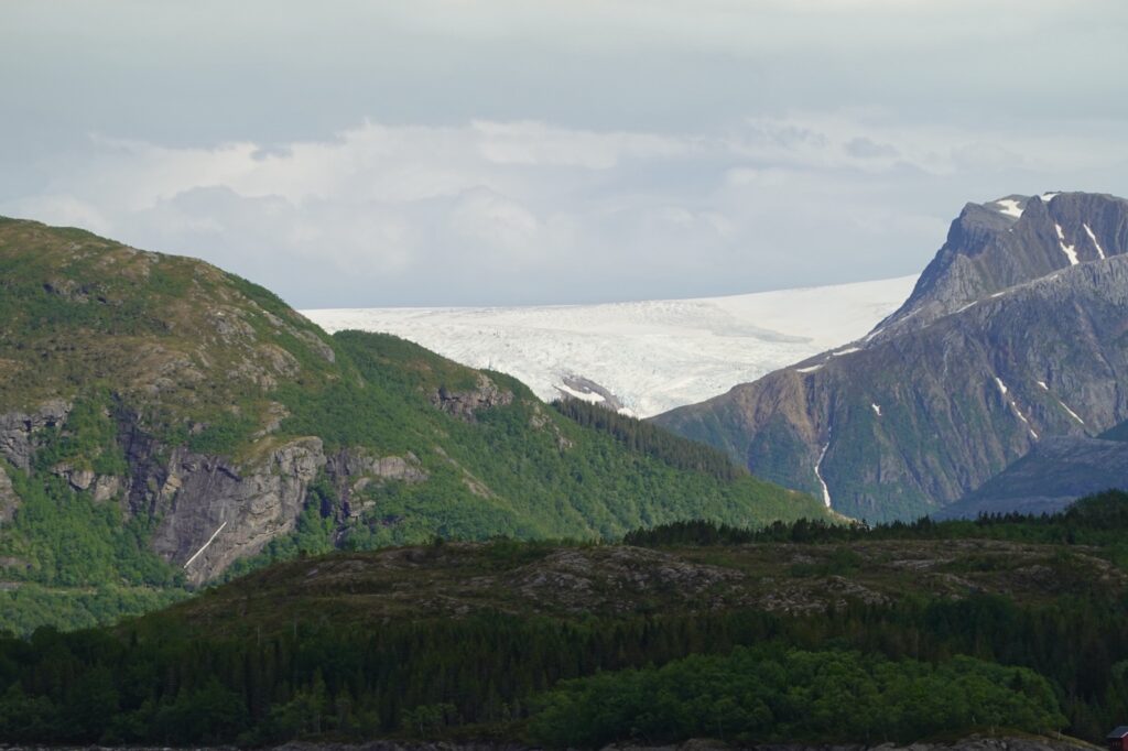Nous réussissons à embarquer et pouvons admirer le glacier Svartis depuis le pont du bateau. Une autre de nos interrogations était de savoir si nous allions faire le détour pour aller au point de vue du glacier. Cela représente tout de même 9 km aller simple avec un peu de dénivelé, le retour se faisant par la même route. La question est toujours en suspend… Le prochain ferry est dans 30 km et il y en a un à 14h, un à 16h puis un autre vers 20h… Il va nous falloir régler ça demain !