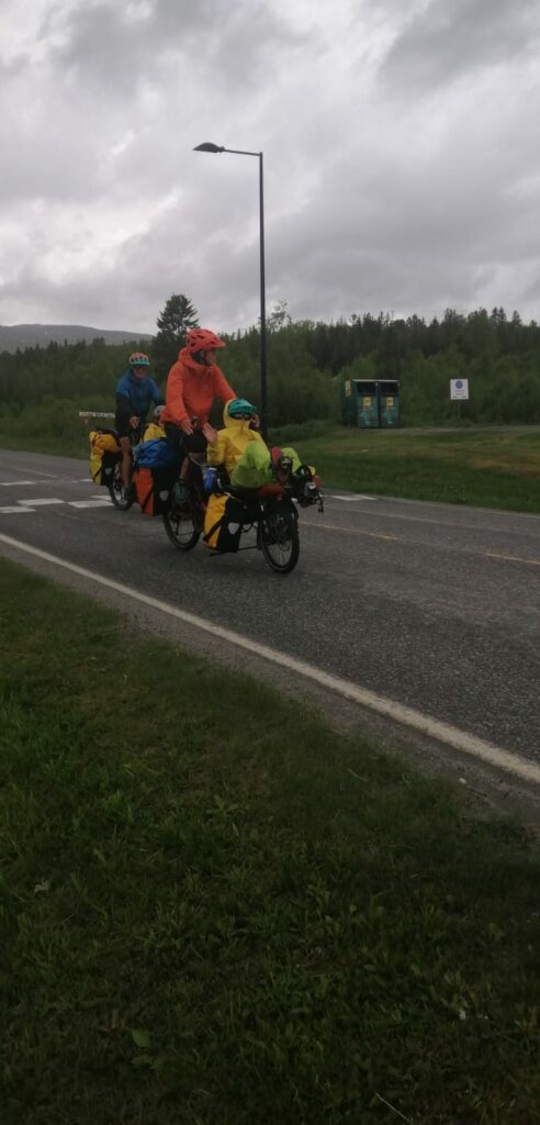 D’ailleurs, est-ce que nous ne bivouaquerions pas ici ? Des discussions commencent, oui, non, les avis sont partagés… Au moment où nous actons que nous restons, nous voyons arriver Patrice et Anne, le couple de la Tronche que nous avions rencontré à Orkanger. Ils ont prévu d’aller au camping de l’autre côté, ils seraient bien restés là mais ils doivent faire une lessive. Ils nous disent que nous sommes les bienvenus. Martin nous demande avec insistance de quitter ce bel endroit et d’aller finalement au camping. La famille finit par craquer et pique un sprint pour attraper le prochain ferry (alors qu’il y en a un autre 30 minutes plus tard, mais bon, les enfants adorent sprinter pour l’arrivée aux ferries…).