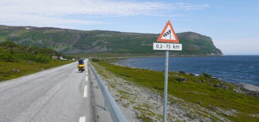 C’est la peau du ventre bien tendue que nous partons peu après 11h. Nous aimerions réussir à prendre le ferry de 17h30 qui nous mènera aux îles Vesteralen. Il est à 50 km, ce doit être dans nos cordes.