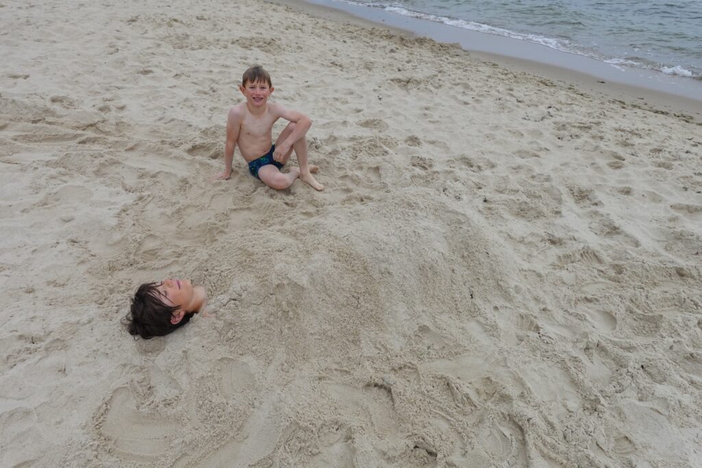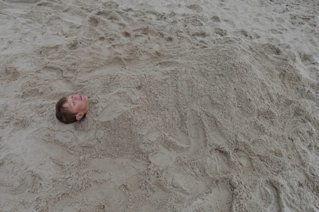 C’est vers 18h que nous atteignons notre but. Il y a énormément de monde sur ce site, c’est assez impressionnant ! Nous nous trouvons une petite place. Les enfants se précipitent à la plage. Ils sautent dans les vagues et jouent dans le sable. Maman les surveille allongée sur le sable pendant que Papa monte la tente.