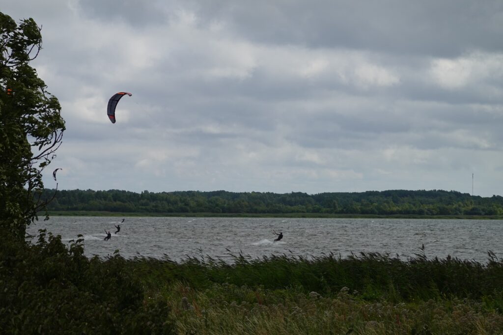 Et nous avons bien fait ! C’est très beau et nous voyons la mer ! Nous passons à proximité d’un groupe de kite-surfers, certains font de beaux sauts.