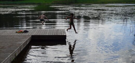 La pluie ne vient finalement pas. Nous prenons notre dîner installés sur des petites tribunes, puis c’est la routine, vaisselle, blog et jeux. Nous hésitons à rejoindre directement Riga demain, mais cela représente tout de même environ 85 km, avec la chaleur et notre incapacité à nous lever tôt, nous préférons couper l’étape en deux.