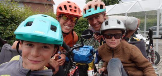 Les enfants enfilent leur maillot et vont vite à l’eau, suivie de près par Maman qui n’attendait que ça aussi. Nous faisons sécher nos affaires et montons la tente car nous entendons l’orage qui gronde…