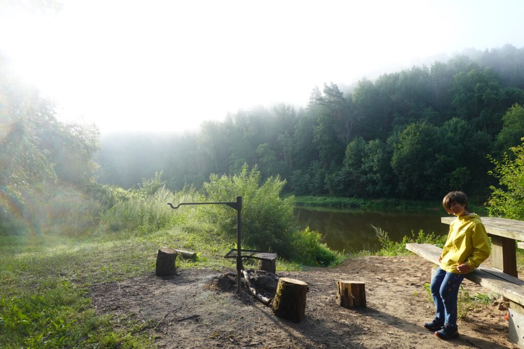 L’opéra a duré jusque tard puis vers 3h, Maman ouvre les yeux et entend des boum boum au loin… Heureusement, cela ne l’empêche pas de se rendormir ! Le réveil sonne à 7h, les enfants dorment à poings fermés mais ne tardent pas à se lever. Dehors, le soleil fait son apparition, la brume disparait et des rayons atteignent la table qui va nous servir pour notre petit-déjeuner.