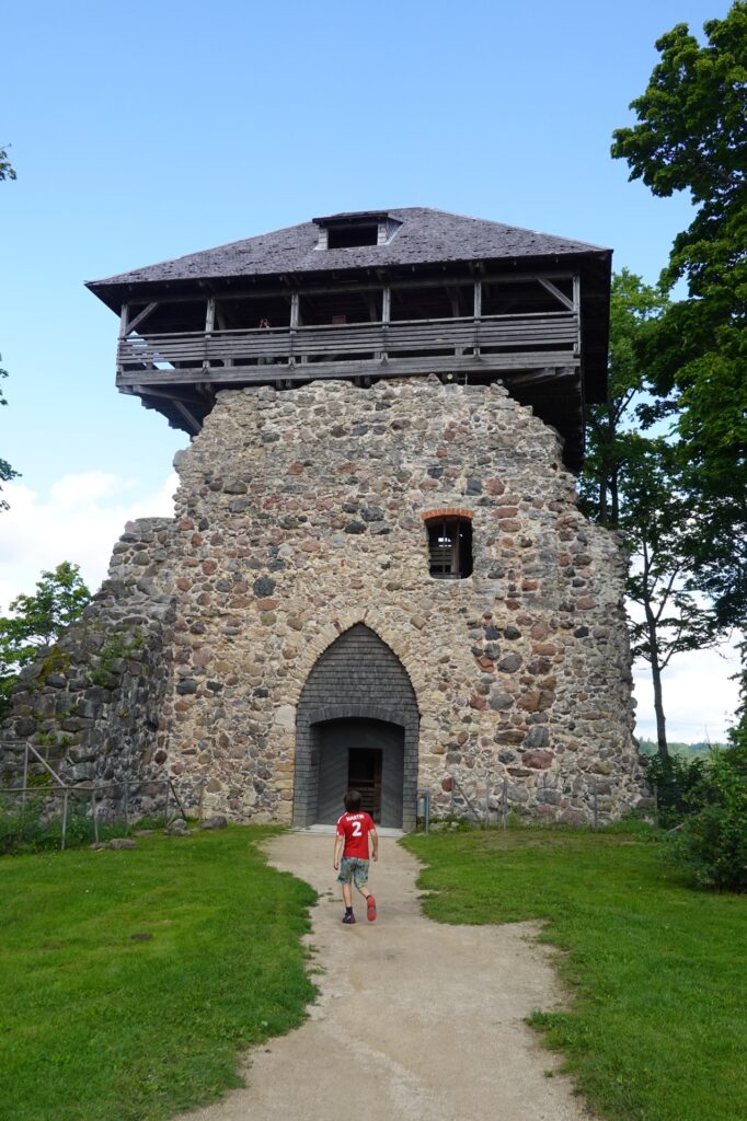 Nous franchissons la Gauja pour atteindre notre premier arrêt pour aujourd’hui, la ville de Sigulda. Une bonne petite ascension (un panneau nous annonce 9% sur 1 km) et nous arrivons à destination. Nous avons parcouru à peine plus de 2 km…