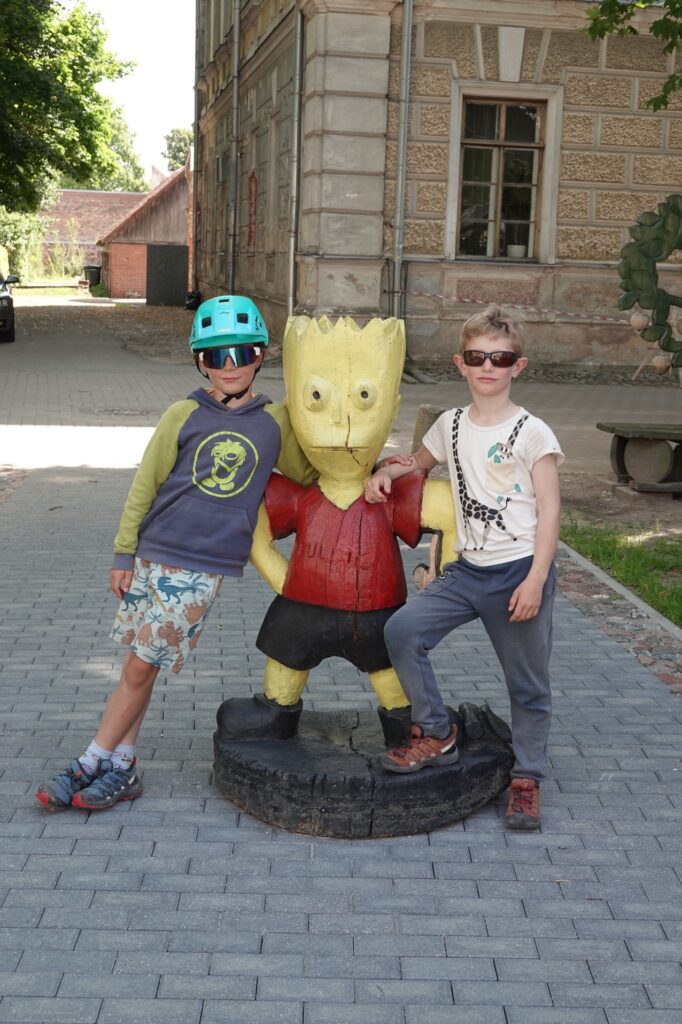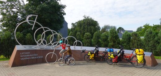 Nous traversons de nouveau des champs, nous faisons tailler quelques shorts (ne soyons pas médisants, il y a tout de même trois voitures qui ont sagement attendu dernière nous pour nous doubler, nous étions presque de retour en Norvège !) et après un peu plus de 12 km, faisons notre halte déjeuner sur une aire de pique-nique au bord de la Vanka, à Īvande. Nous en profitons pour nous baigner, ce coup-ci, tout le monde à l’eau !