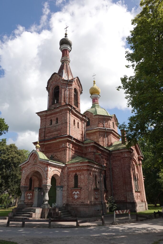 Nous ne sommes prêts qu’à 11h et donnons nos premiers coups de pédales sous le soleil. Nous retournons vers Kuldīga et notamment vers la fameuse tour penchée. Ce matin, nous sommes seuls quand nous grimpons à son sommet.