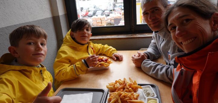 Ce matin nous avons mis le réveil pour pouvoir prendre le petit-déjeuner avec la famille qui nous accueille. C’est dur pour Paolo et Léa de partir à l’école, ils ne veulent pas laisser Martin...